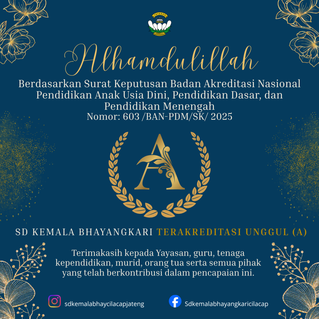 SD Kemala Bhayangkari 01 Cilacap berhasil meraih Akreditasi A berdasarkan Surat Keputusan Badan Akreditasi Nasional Pendidikan Anak Usia Dini, Pendidikan